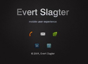 Evert has a great vcard. It starts out with the contact information, and then your eyes notice the words “mobile user experience” I guess the mystery of the vcard does have it’s advantages, but I’d prefer it to be clearer.