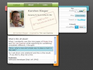 Vcards are a fad that didn’t really catch on, think of them as virtual business cards (because that’s essentially what they are). So instead of handing out business cards, you hand out urls that point to this awesome looking page that has all your contact information. Since vcards are mostly used by freelance web designers, the designs of vcards are excellent, ranging from beautifully minimalistic to outrageously awesome.A good vcard design should answer 3 important questions,