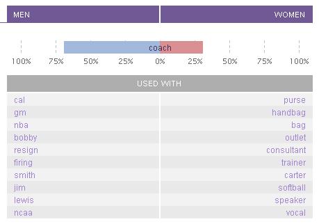 Not suprisingly, men were tweeting about sports (all 10 entries), women on the hand had a mixture of fashion (a testament to the popularity of the coach brand) , sports and even vocals.