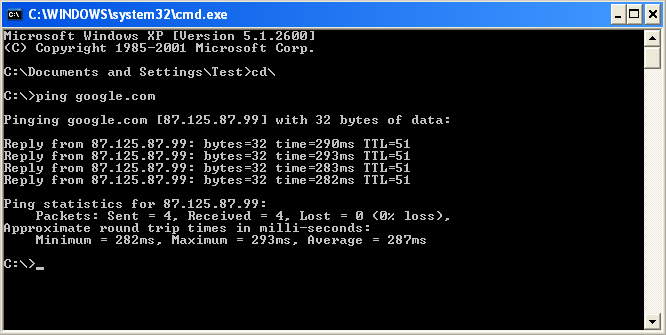 To confirm my suspicions, I did a simple ping for google.com and got the following: