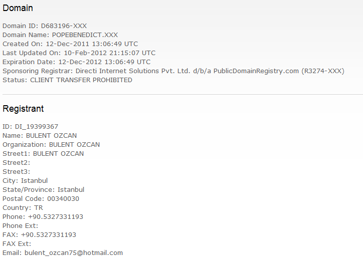 By the way, the Email address in the ICM registry, matches the email address on the webpage itself for contact information, the registration belongs to a Bulent Ozcan of Istanbul Turkey. If this guy is stupid enough to pull a stunt like this, he probably wasn’t smart enough to change his phone number in case you want to drop him a call and ask him why he’s doing this.