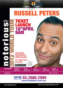 Update 1: Russell Peters World Tour in Malaysia was sold out in hours. I failed to get a ticket online, couldn’t even log in. A friend of mine lining up in KLCC was told at around 10-ish in the morning that only platinum tickets were available.