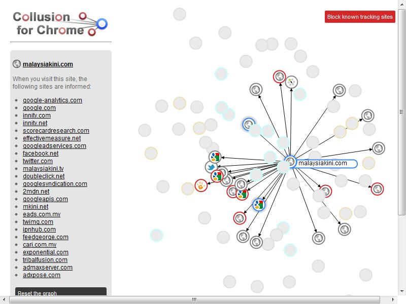 1) The Lowyat Forum 2) Malaysiakini 3) Google Reader / Google Mail / Google search 4) Maybank2u 5) Thestar.com.my 6) Paul Tan 7) A couple other blogs.What I got was the ridiculously scary image above, in fact from just one website (malaysiakini.com), my information was sent to nearly 24 different websites including a whole host of advertisers: