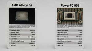 THE GAMECPU Wars is a trump card game built by geeks for geeks. For Volume 1.0 we chose 30 CPUs that we believe had the greatest impact on the desktop history. The game is ideally played by 2 or 3 people. The deck is split between the players and then each player takes a turn and picks a category that they think has the best value. We have chosen the most important specs that could be numerically represented, such as maximum speed achieved and maximum number of transistors. It's lots of fun, it has a bit of strategy and can be played during a break or over a coffee.