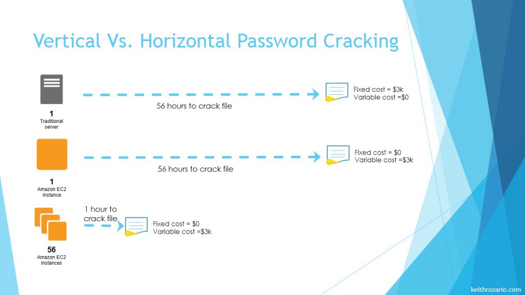 Scaling up with the cloud basically means, cracking is no longer a matter of time–but just cost.