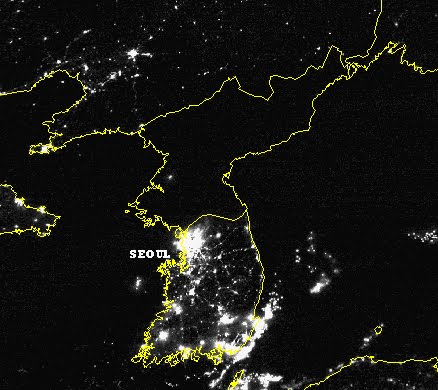 I’ll let you guess where the Korean border is based on this satellite image of the night-lights in the region.