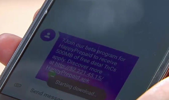 - The hackers sent an sms with a link, the victim willingly clicked on it, downloaded the app, opened the app, and then kept the app on the phone. This is clearly shown in the full episode, but somehow was redacted from their 2-minute clip.