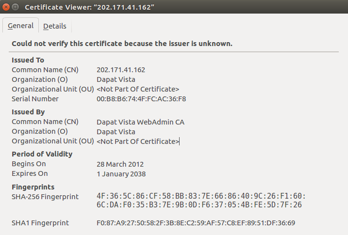 Looking at the issuers from the 501 sites, COMMODO issued 107 certificates, Entrust follows closely with 100, DigiCert with 61, cPanel has 51, and GeoTrust with 40. Most of these are Domain Validated not Extended Validated. That’s a MOOLAH for something Let’s Encrypt gives for free. Apart from a bunch of self-signed certs, there were 5 that were issued by Dapat Vista WebAdmin CA, which my version of firefox didn’t recognize. Worse still, these certs last till 2038.