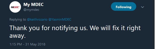 Of course GovTLSAudit was purpose built to audit TLS implementations, and finding bad certificates is what it does.Again, taking to twitter I reported a bad certificates on MSC Malaysia and Bank Negara. I was impressed by MDEC’s quick response on the mscmalaysia domain, they were quick and happy to respond.
