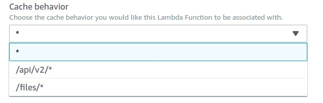Once you have a version of the function, you can then associate it with a CloudFront behavior – remember, the function is associated with the CloudFront Behavior, not CloudFront distribution. A behavior is a path specific parameter, that specifies which origin CloudFront should reference, e.g. I have a behavior for /api/v2 that sends traffic to an API Gateway, and a /files behavior that redirects traffic to an S3 bucket, and finally a * with takes all other traffic to a html file hosted on a separate S3 bucket.