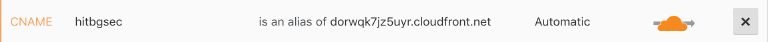 Once done. We merely take the domain name of the distribution (e.g. dorwqk7jz5uyr.cloudfront.net) -- and create a CNAME entry for hitbgsec.keithrozario.com pointing to it.