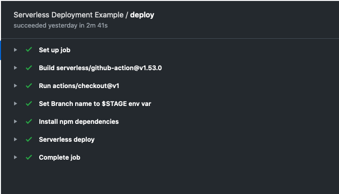 This way, once a branch is deleted, a job is triggered that deletes the environment tied to that branch, using serverless remove.
