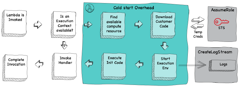 OK, now we know where the access stored keys are stored, but how did they end up here and what kind of access keys are they? For that, we need to look at the life-cycle of a Lambda function...