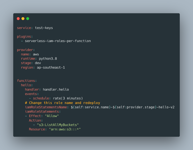 With those practical considerations in mind, we need two steps to fix this issue, the first is a pro-active measure to ensure function get its own IAM role, with scoped down permissions for only what the function needs to do.